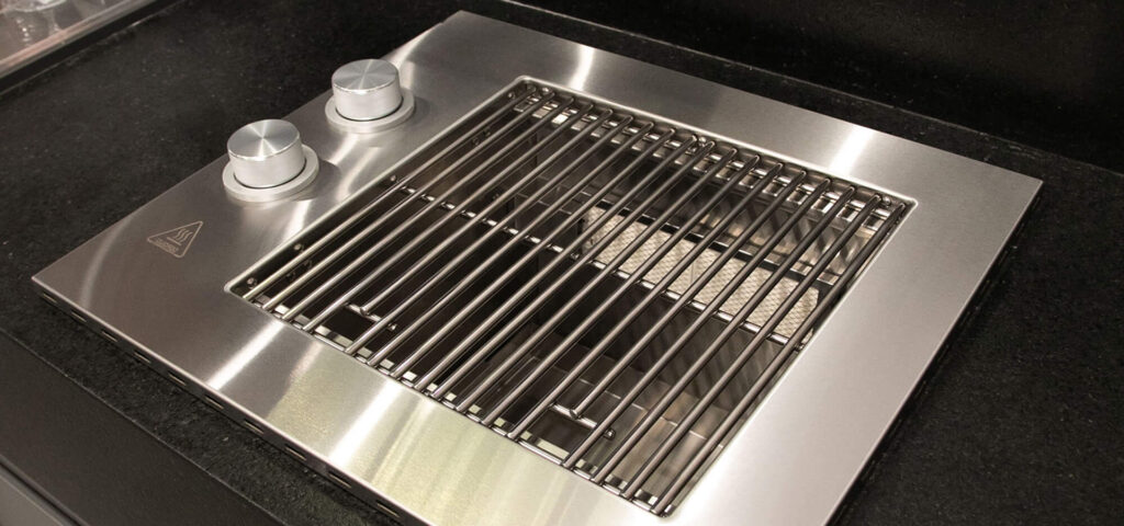 Feita 100% em inox 304, com queimadores cerâmicos infravermelhos de 12.000 BTUs, ela atinge até 300°C com controle total da temperatura entregando o ponto perfeito com o mínimo de fumaça, mesmo em ambientes fechados.